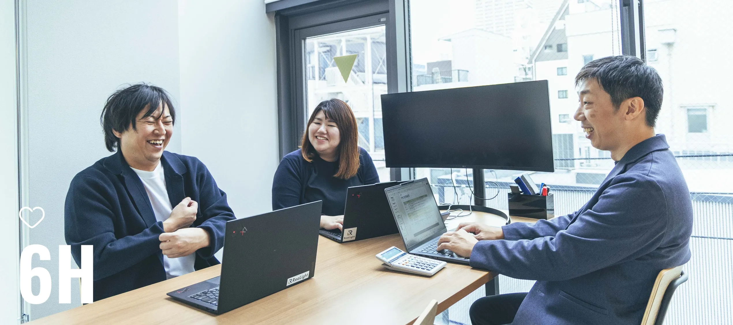フレックスタイム制を導入しているReaLightでは、コアタイムを6時間(9:50~15:50)と定め、全社員が顔を合わせる時間帯や案件ごとのチームでの情報共有に役立てています。